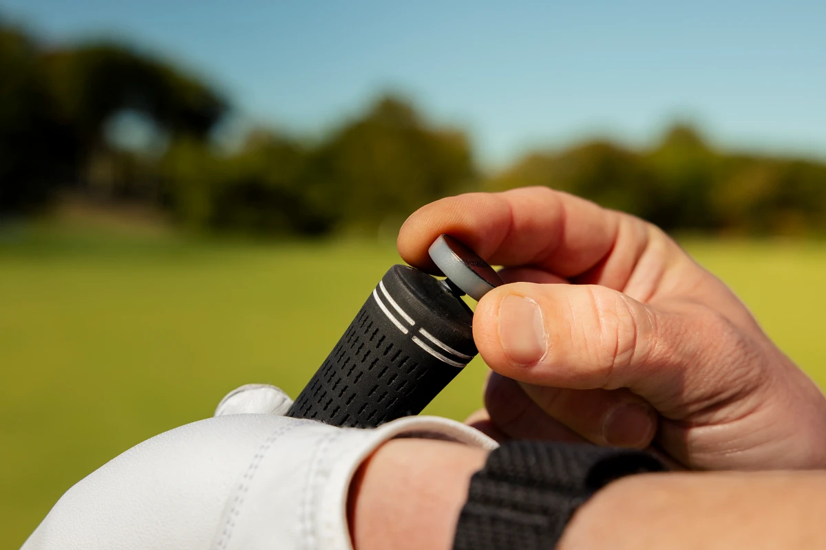 Lekkie i bezpieczne czujniki do monitorowania kijów golfowych CT1 można łatwo przymocować do końca rączki kija golfowego. Działają one z dowolnym kijem golfowym — podczas gry nawet nie zauważysz, że są one zamocowane.