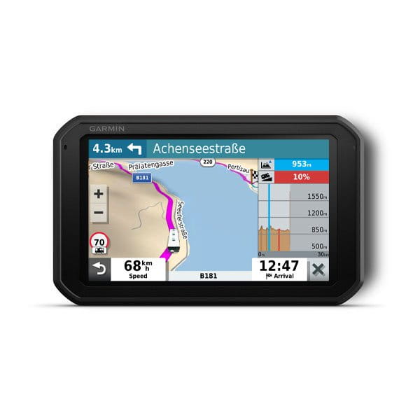 Zyskaj lepszą orientację dzięki ostrzeżeniom drogowym, które informują o stromych nachyleniach drogi, ostrych zakrętach, limitach masy i innych kwestiach. Możesz nawet wyświetlać szczegółowe informacje o wysokościach, aby przygotować się do stromych wzniesień na trasie.