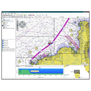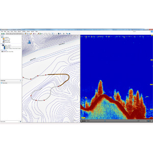 - Wyświetla profile głębokości trasy lub śladu, a także dystans i namiar