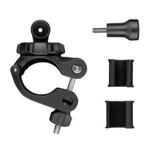 Uchwyt można zamocować na rurze o średnicy od 0,35 do 0,95 cala, jak również na innych elementach, np. na kijkach narciarskich, lufie karabinu, pałąkach zabezpieczających itp. Uchwyt jest wyposażony w łączenia, które blokują położenie kamery, dzięki czemu nie musisz polegać jedynie na naprężeniu uchwytu. Takie rozwiązanie, stanowiące gwarancję większej trwałości i wytrzymałości, zabezpiecza także przed wibracjami.