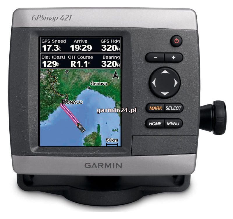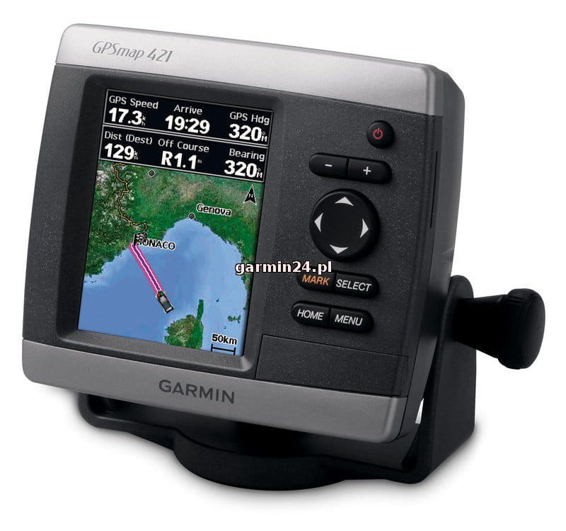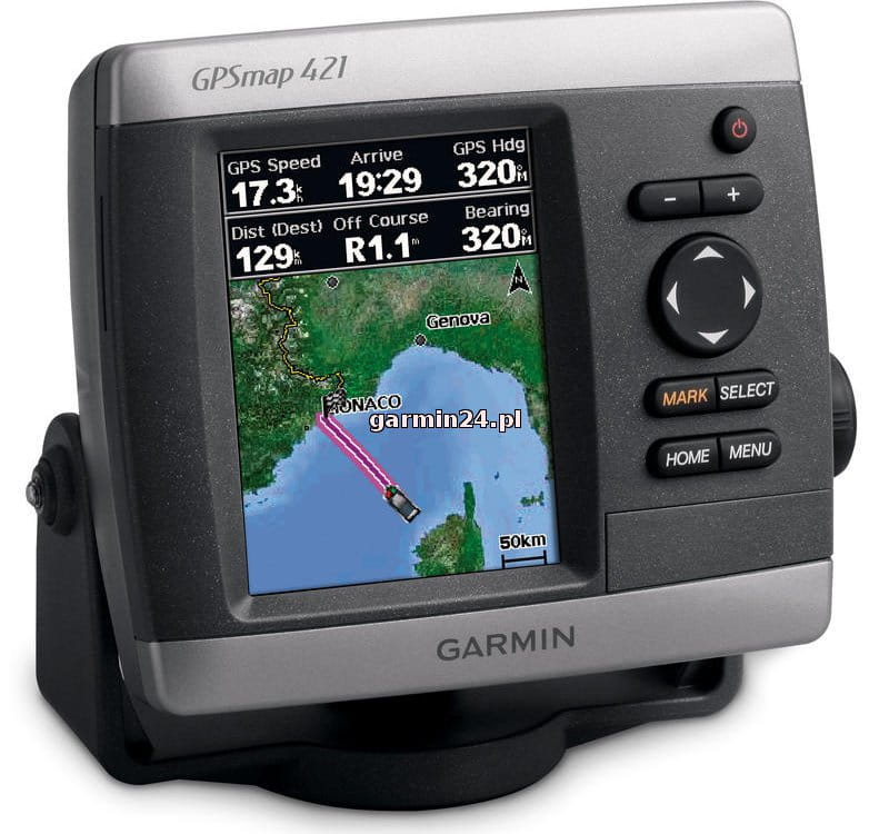 Zamiast w tradycyjne mapy, ploter GPSMAP 421 jest wyposażony w mapę bazową całego świata zawierającą zdjęcia satelitarne wysokiej rozdzielczości. Urządzenie GPSMAP 421 jest również standardowo wyposażone w bardzo czuły odbiornik GPS umożliwiający bardzo skuteczną akwizycję satelitów i szybsze czasy odbioru sygnału. Ponadto GPSMAP 421 może odbierać graficzne dane na temat pogody w Stanach Zjednoczonych za pomocą opcjonalnego odbiornika/anteny satelitarnej GXM 51. A przy użyciu gniazda kart SD łatwo jest dodawać inne mapy bez konieczności podłączania urządzenia do komputera.