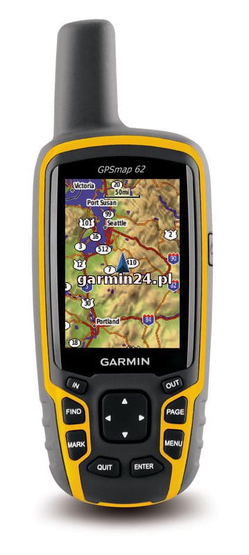 Nowo zaprojektowany ręczny system nawigacyjny GPSMAP 62 jest wyposażony w kolorowy (65 tys. kolorów) ekran o przekątnej 2,6 cala, czytelny nawet w pełnym słońcu, który obsługuje usługę BirdsEye™ Satellite Imagery (wymagana subskrypcja) oraz Własne mapy. Wytrzymałe i wodoszczelne urządzenie GPSMAP 62 posiada antenę śrubową z czterema zwojami zapewniającą niezrównany odbiór sygnału, a ponadto wspaniale się prezentuje.