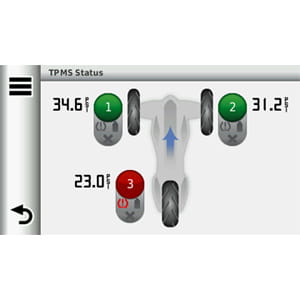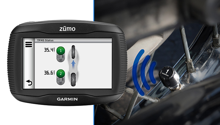 Garmin TPMS obejmuje najmniejszy spośród dostępnych na rynku motocyklowych czujników ciśnienia w oponach. Każdy czujnik TPMS jest zasilany jedną wymienną baterią, która umożliwia korzystanie z niego nawet przez 18 miesięcy, zależnie od sposobu użytkowania systemu. Aby wydłużyć czas działania baterii, system TPMS działa w trybie niskiego poboru mocy i „budzi się” w momencie wykrycia ruchu.