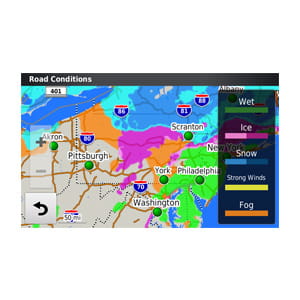 Co dzieje się na drodze? Urządzenie zūmo 590LM umożliwia dostęp do informacji o pogodzie i utrudnieniach drogowych w czasie rzeczywistym za pomocą aplikacji Smartphone Link4 (wymagana subskrypcja).